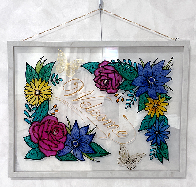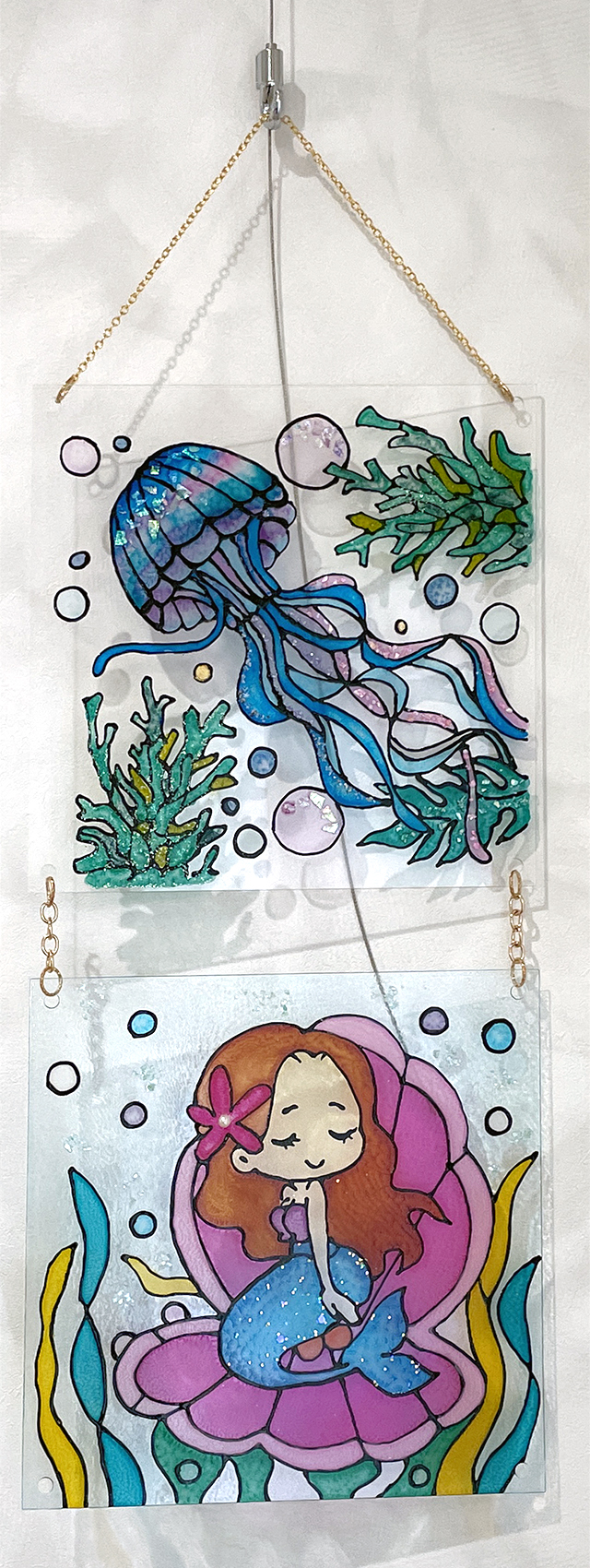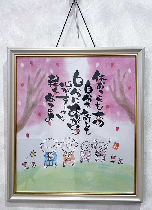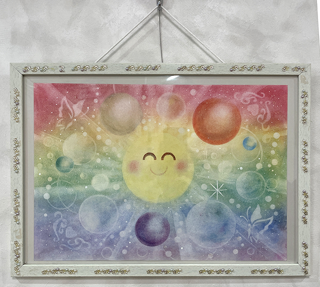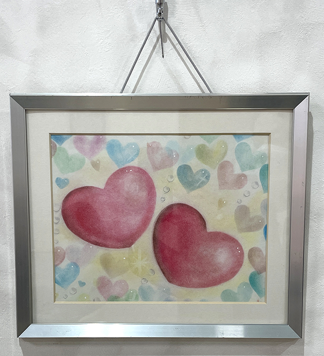2歳の娘さんが発達障害とわかり、その悩み苦しみの苦難をアートに出会うことによって、乗り越えることができました。 現在その娘さんは、33歳になり、一緒にパステルアートなどの講座を開催しています。 生涯を持つ子供さんのいる方々へエールを込めて展示してくださいました。